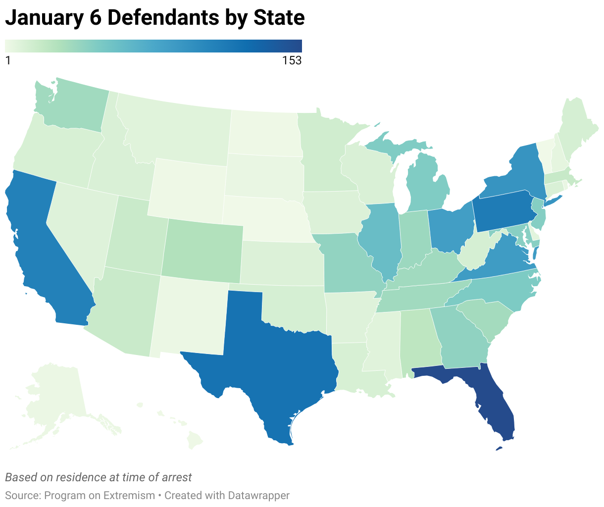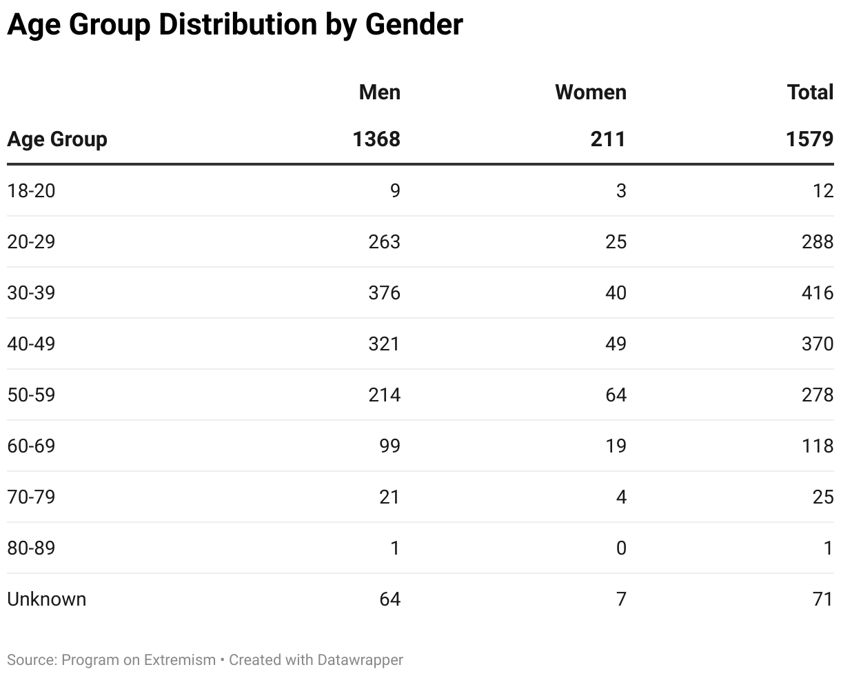 The Program on Extremism at George Washington University meticulously tracked every federal January 6 defendant by leveraging publicly available federal court records and open-source reporting. Researchers systematically compiled and verified case details, ensuring accuracy and comprehensiveness in their dataset. By cross-referencing legal documents, indictments, and media reports, the program provided a reliable resource for understanding the scope of prosecutions and trends among those charged in connection with the Capitol attack. For inquiries pertaining to more detailed datasets, please contact the Program on Extremism at extremism
